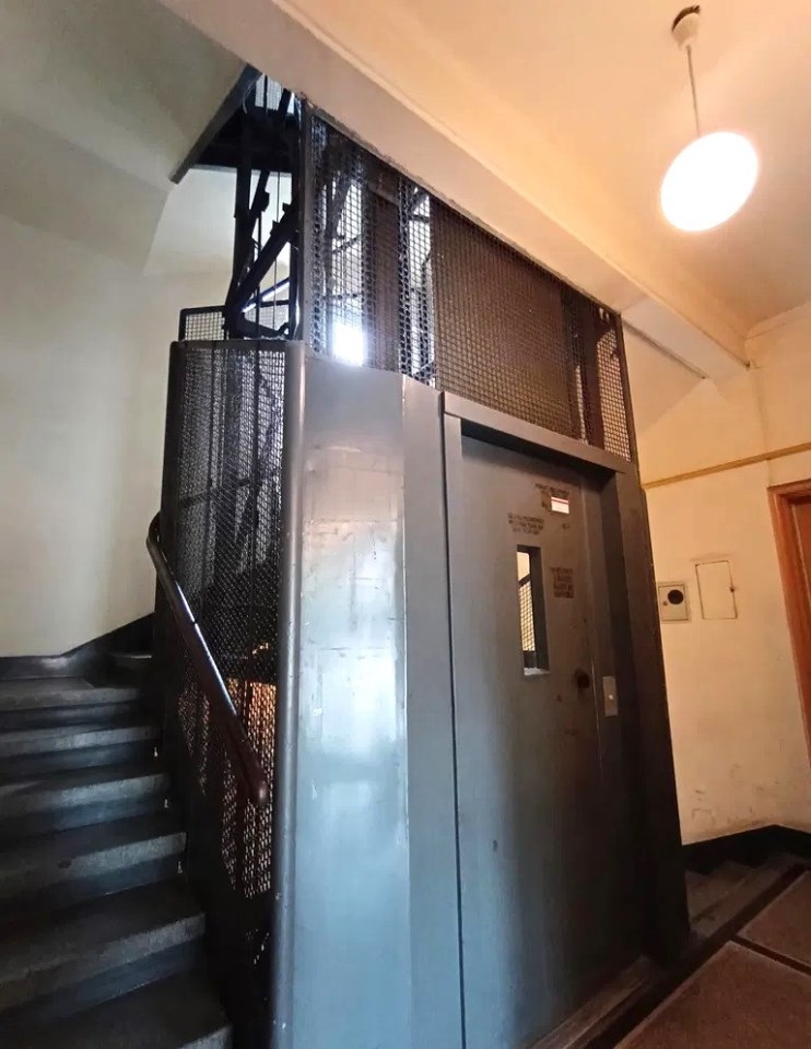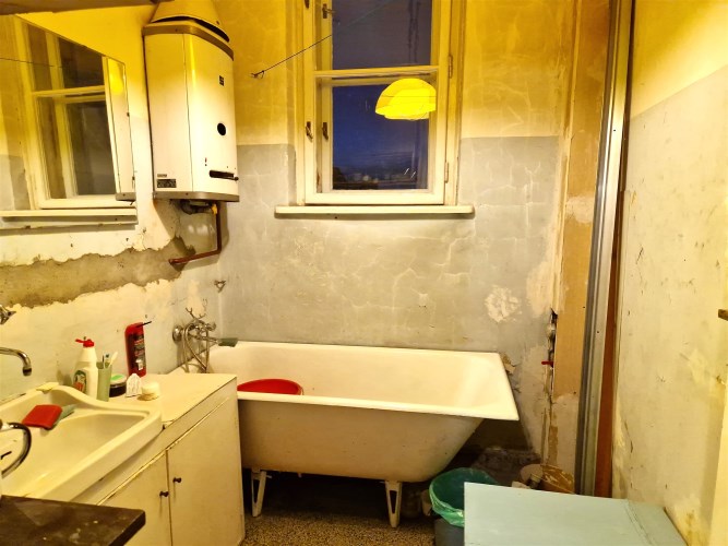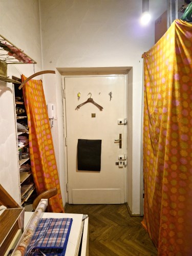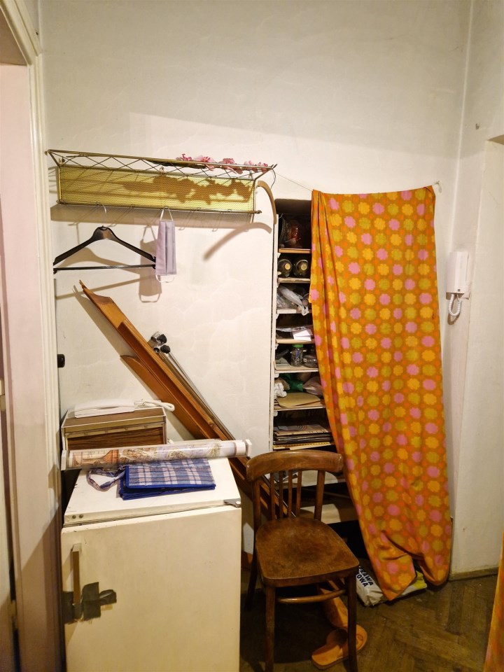 Mieszkanie o powierzchni 27,9 m2 usytuowane na piątym piętrze pięciopiętrowej kamienicy z 1939 roku.