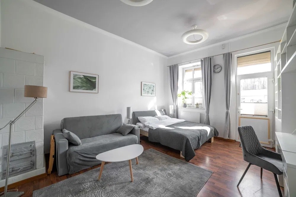 Mieszkanie o powierzchni 32,5 m2 usytuowane na parterze dwupiętrowej zadbanej kamienicy z lat 50-tych.