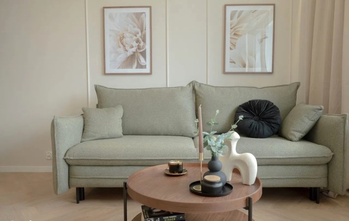 Częściowo umeblowane i wyposażone, nowe meble oraz sprzęty agd dotąd nie używane (piekarnik, okap, płyta indukcyjna, rozkładana sofa, stolik kawowy itp).