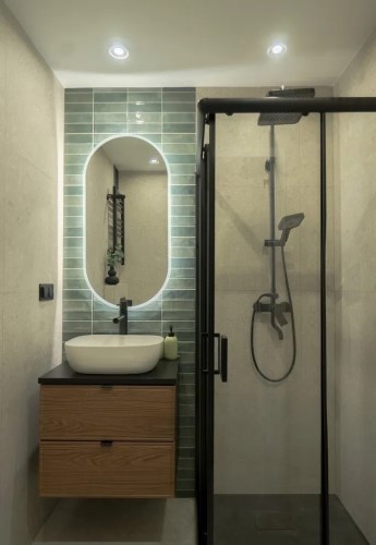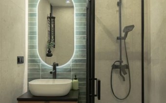Łazienka (3,3 m2) z kabiną prysznicową oraz wc.