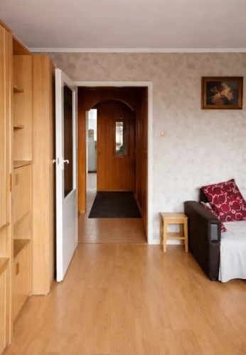Mieszkanie o powierzchni 47,4 m2 usytuowane na czwartym piętrze czteropiętrowego bloku z lat 70-tych.