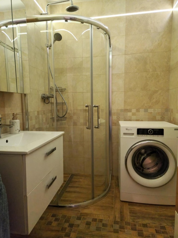 Łazienka (ok. 3 m2) z kabiną prysznicową, osobno wc.