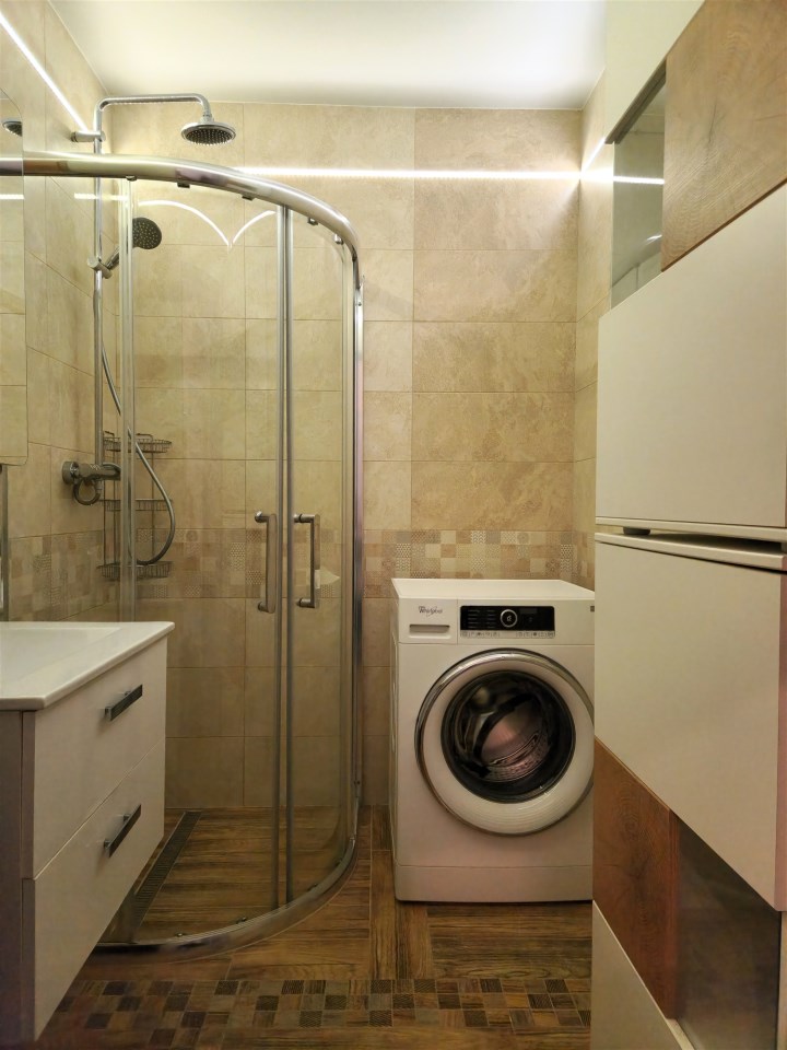 Łazienka (ok. 3 m2) z kabiną prysznicową, osobno wc.