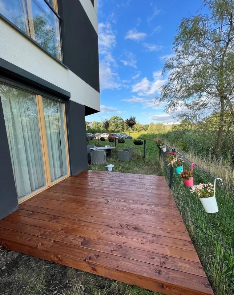Mieszkanie posiada taras z ogródkiem (od strony lasu).