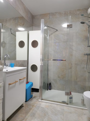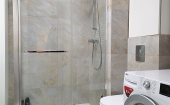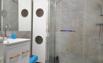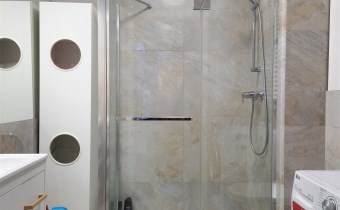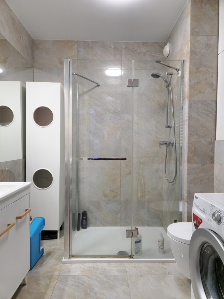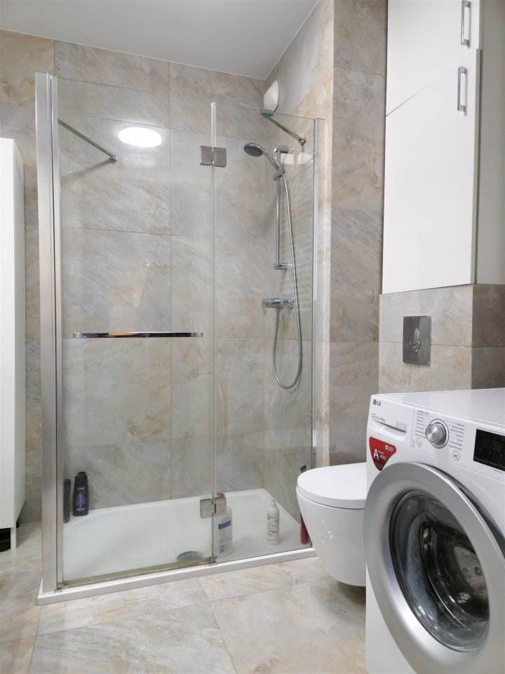 Łazienka (4,4 m2) z kabiną prysznicową oraz wc.