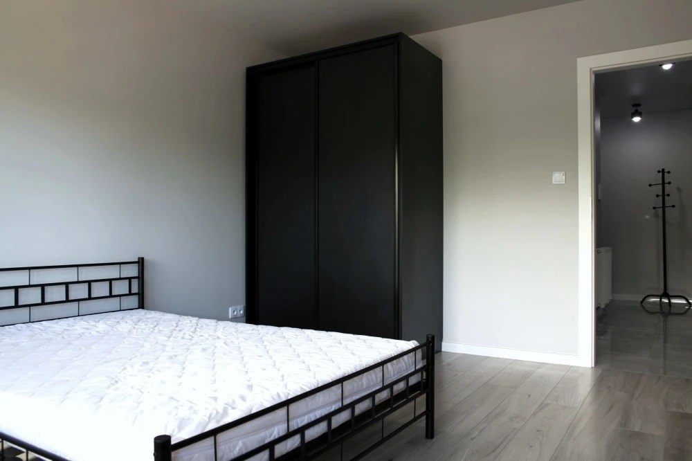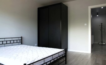 Mieszkanie w pełni umeblowane i wyposażone (garderoba z półkami, łóżko małżeńskie, stolik, regał, rozkładana sofa, biurko, stolik pod telewizor, stolik kawowy).